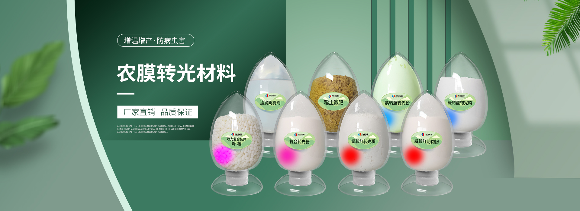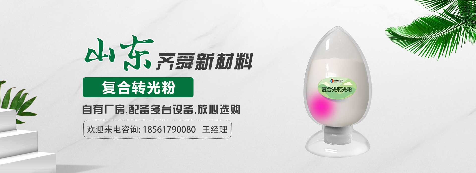 我公司前身為2011年成立的淄博舜明熒光科技有限公司。隨著公司的發(fā)展,廠(chǎng)址從淄博搬遷到青島,2020年5月公司重新注冊(cè)為山東齊舜新材料有限公司。公司注冊(cè)資本2000萬(wàn)元,主要從事新材料研究和開(kāi)發(fā)。目前主要產(chǎn)品包括:農(nóng)膜用轉(zhuǎn)光粉、轉(zhuǎn)光母粒以及轉(zhuǎn)光農(nóng)膜;農(nóng)膜用長(zhǎng)效防霧流滴涂覆液;復(fù)合肥添加劑及葉面肥(稀土微肥);防偽粉;LED封裝熒光粉;夜光粉;太陽(yáng)能光伏電池增效熒光粉;鋰電池正極材料等。
